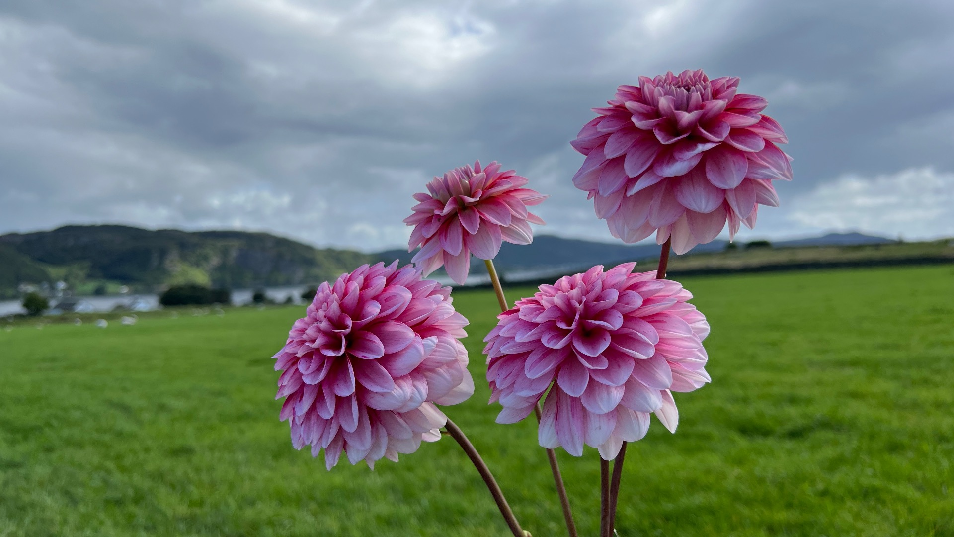 Dahliaene våre har vokst jevnt og trutt gjennom våren og sommeren. Dahliaene er en høstblomst men vi er så heldige at vi har fått blomstring allerede fra juli i år. Hurra!